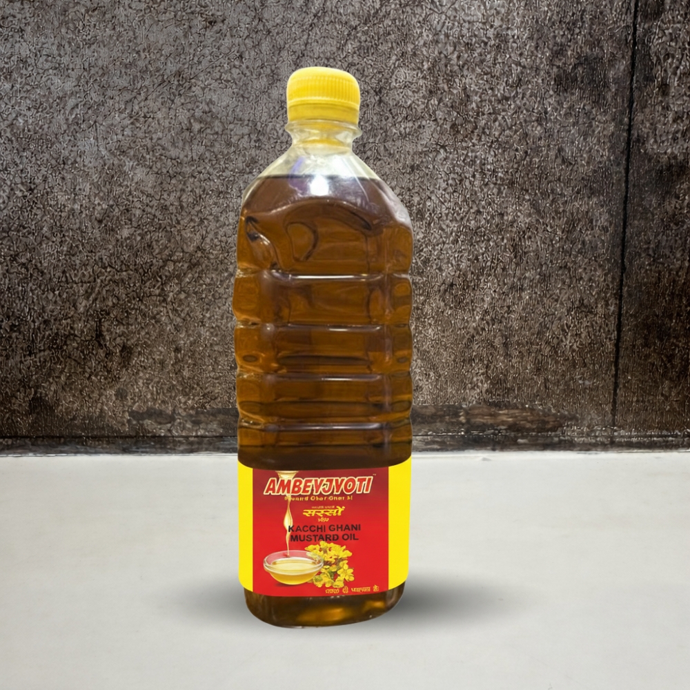 Pure & Healthy – Our cold-pressed Kachi Ghani mustard oil, made from premium mustard seeds, keeps its rich aroma, authentic flavor, and nutrients intact for wholesome cooking. Ambeyjyoti Kacchi ghani Mustard Oil is traditionally processed to retain its natural aroma, pungency, and flavor.